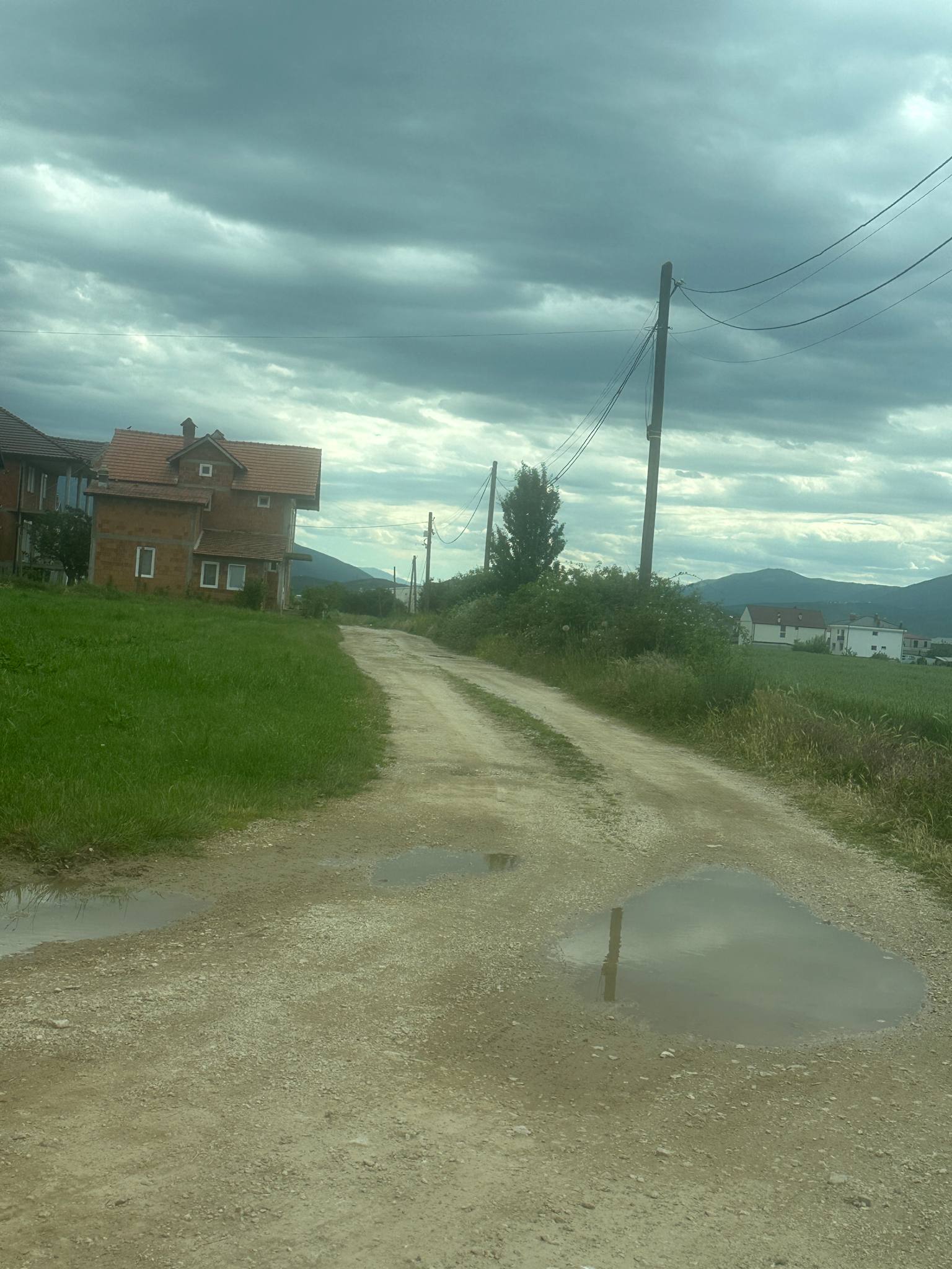 **Kerkohet te shtrohet (kubeza ose asfalt) rruga nga fabrika Kosova Pack deri ne fund te rruges sipas fotos (nga pika 1 ne piken 2). Ne kete rruge jetojne rreth 15 familje dhe gjendja eshte e mjerueshme.